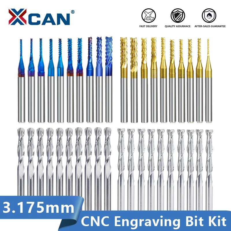 Name: XCAN-Juego de brocas de grabado, Nano Blue Coated brocas de rebajadora de CNC, cortador de fresado de corte, vástago de 1/8 ", herramientas de fresado de carburo